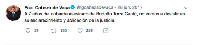 Y su desparpajo va mas lejos,dice «no descansara» hasta esclarecer la ejecución en 2010 del entonces candidato priista a la gubernatura RODOLFO TORRE CANTU ,pareciendo ignorar que decepciona menos aquel que tambien ofrece menos.