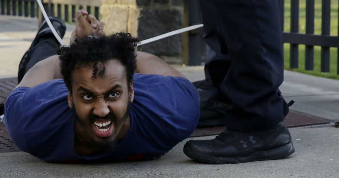 Un manifestante es detenido por la policía de Atlanta durante una protesta el sábado 30 de mayo de 2020 en Atlanta. Foto: Brynn Anderson, AP