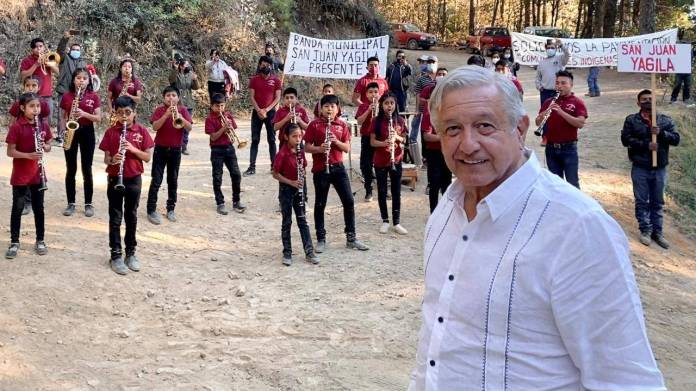 AMLO regala instrumentos a bandas de viento de Oaxaca