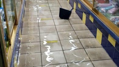SE INUNDAN LOCALES EN LA CALLE HIDALGO ZONA CENTRO DE ALTAMIRA.