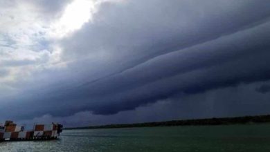 *Por tercera vez en el mes, se forma una «nube arcus», conocida también como nube cinturón, sobre Playa Miramar, en…