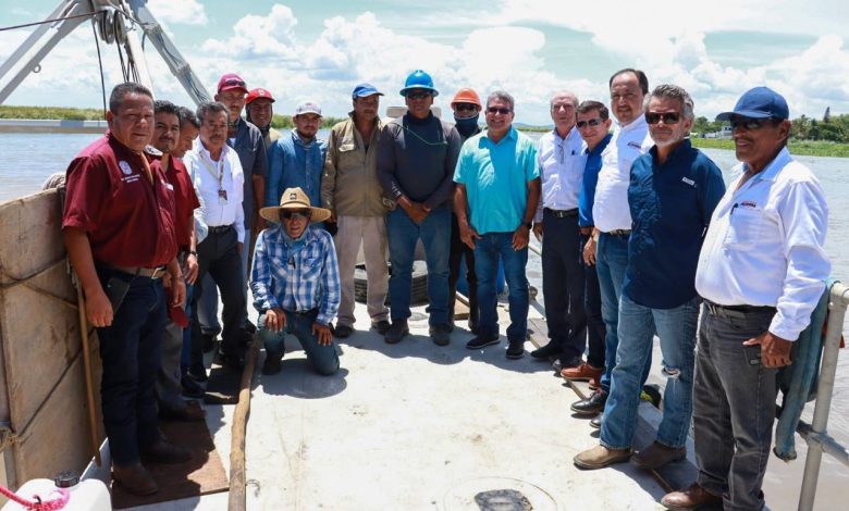 Supervisan alcalde y gerente general de COMAPA Altamira labores de desazolve en laguna de Champayán