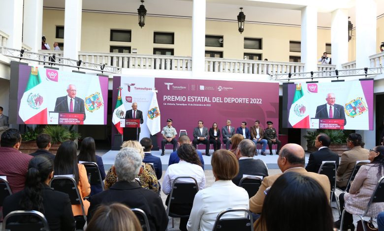 En el marco de la entrega del Premio Estatal del Deporte 2022, esta mañana en el patio central de Palacio de Gobierno, el gobernador Américo Villarreal destacó las bondades y beneficios de la actividad física en la vida diaria y aseguró, que durante su administración se brindará todo el apoyo e impulso para seguir forjando buenos ciudadanos y más campeones.