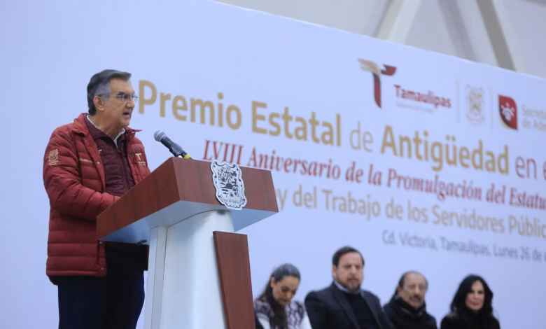 Ciudad Victoria, Tamaulipas.- En el marco de la entrega del Premio Estatal de Antigüedad en el Servicio Público 2025, el gobernador Américo Villarreal Anaya reiteró que la reciente reforma a la Ley del IPSSET, además de preservar los derechos adquiridos, otorga mayores beneficios y fortalezas al bienestar de quienes contribuyen al desarrollo de Tamaulipas.