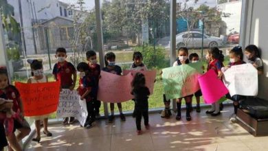 En esta ocasión, los niños fueron quienes llevaron las cartulinas en donde piden restablecer el servicio eléctrico en su escuela…