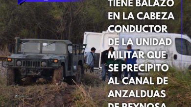 Tiene Tiro en la Cabeza Conductor de Unidad Militar que Precipito al canal de Anzalduas