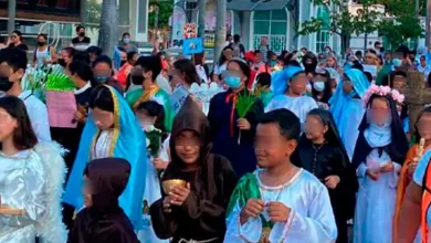 Niños en contra del Halloween desfilan con disfraces de santos y vírgenes