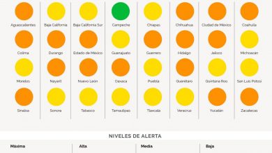 9 octubre, 2020 México: 17 estados en naranja, 14 estados en amarillo y 1 estado en verde.