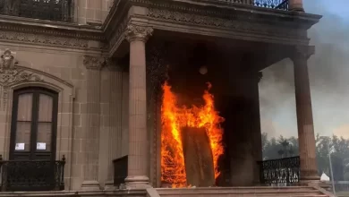 Prenden fuego a las puertas del palacio de Gobierno de Nuevo León