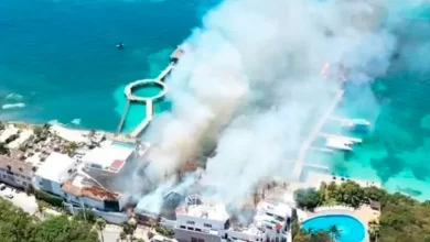 Fuerte incendio consume delfinario en Isla Mujeres