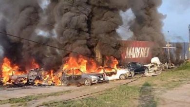 Tras estrellarse, tráiler se incendia y destruye 25 vehículos estacionados en Cárdenas Tabasco