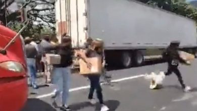 Pobladores rapiñan zapatos y ropa tras choque de tráiler en la carretera Puebla-Veracruz