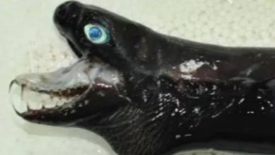 El pez tiene una piel negra y brillante y una mandíbula segmentada como el personaje de ciencia ficción creado por…
