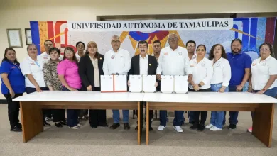 Ciudad Victoria, Tam.; 1 de octubre de 2025. • El rector Dámaso Anaya y la dirigencia del SUTUAT firman el…